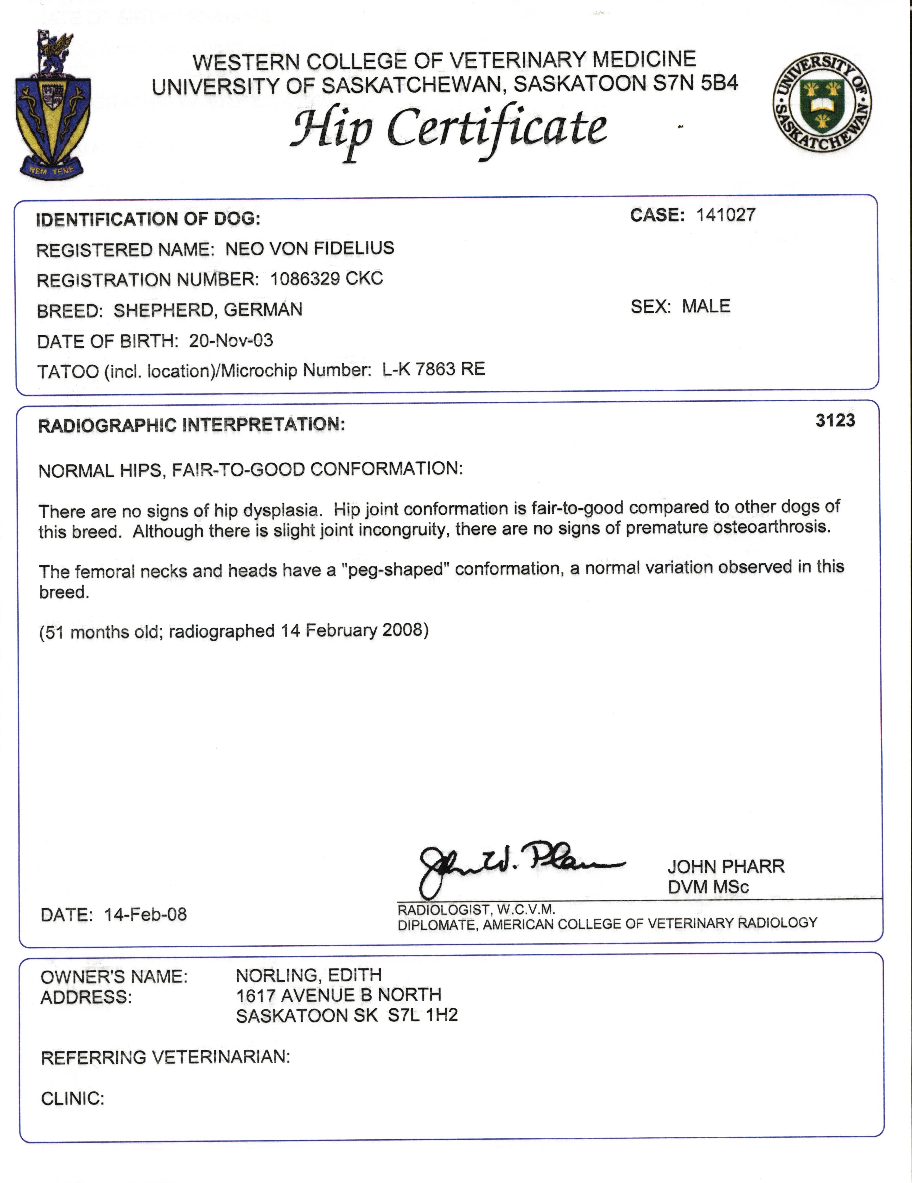 Neo is a son of 2x world Seiger Yasko vom Farbenspiel, half brother to 2004 Seiger Larus von Batu, VA3 Erasmus van Noort and VA4 Orbit von Huhnegrab.